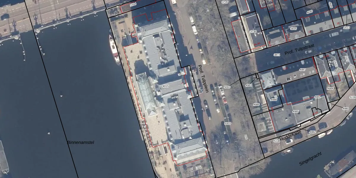 Prof. Tulpplein 1 is gelegen op kadastraal perceel ASD11O4015. Deze kadastrale aanduiding is uniek en wordt gebruikt door het Kadaster om eigendomsrechten en andere zakelijke rechten vast te leggen. Het perceel maakt onderdeel uit van de kadastrale gemeente Amsterdam.