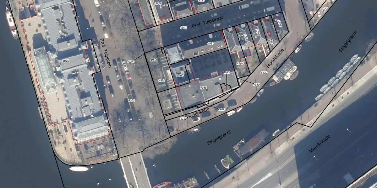 Prof. Tulpplein 16 is gelegen op kadastraal perceel ASD11O4985. Deze kadastrale aanduiding is uniek en wordt gebruikt door het Kadaster om eigendomsrechten en andere zakelijke rechten vast te leggen. Het perceel maakt onderdeel uit van de kadastrale gemeente Amsterdam.