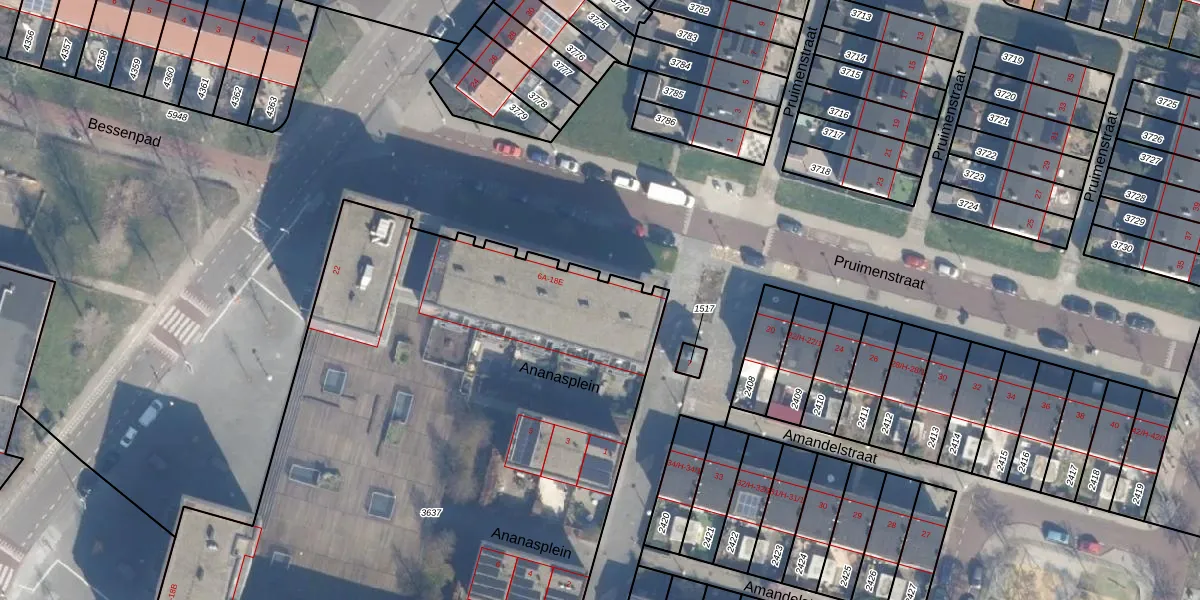 Pruimenstraat 18-D is gelegen op kadastraal perceel ASD28AH3637. Deze kadastrale aanduiding is uniek en wordt gebruikt door het Kadaster om eigendomsrechten en andere zakelijke rechten vast te leggen. Het perceel maakt onderdeel uit van de kadastrale gemeente Amsterdam.
