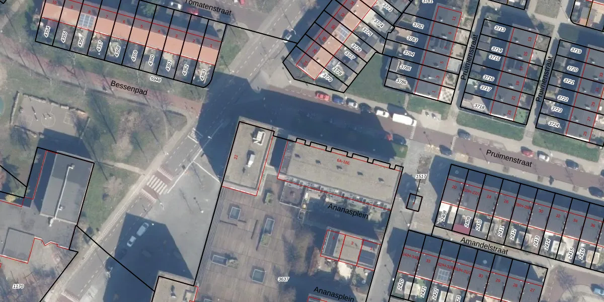 Het perceel waarop Pruimenstraat 8-A staat heeft een oppervlakte van 5200 m². Dit is een zeer groot perceel. De perceeloppervlakte wordt geregistreerd door het Kadaster. Gedetailleerde informatie over de maten van dit perceel kunt u vinden in het rapport Kadastrale kaart met maatvoering van Pruimenstraat 8-A.