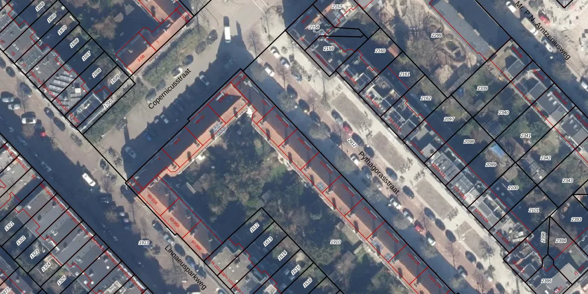 Pythagorasstraat 108-A is gelegen op kadastraal perceel WTG02B1910. Deze kadastrale aanduiding is uniek en wordt gebruikt door het Kadaster om eigendomsrechten en andere zakelijke rechten vast te leggen. Het perceel maakt onderdeel uit van de kadastrale gemeente Watergraafsmeer.