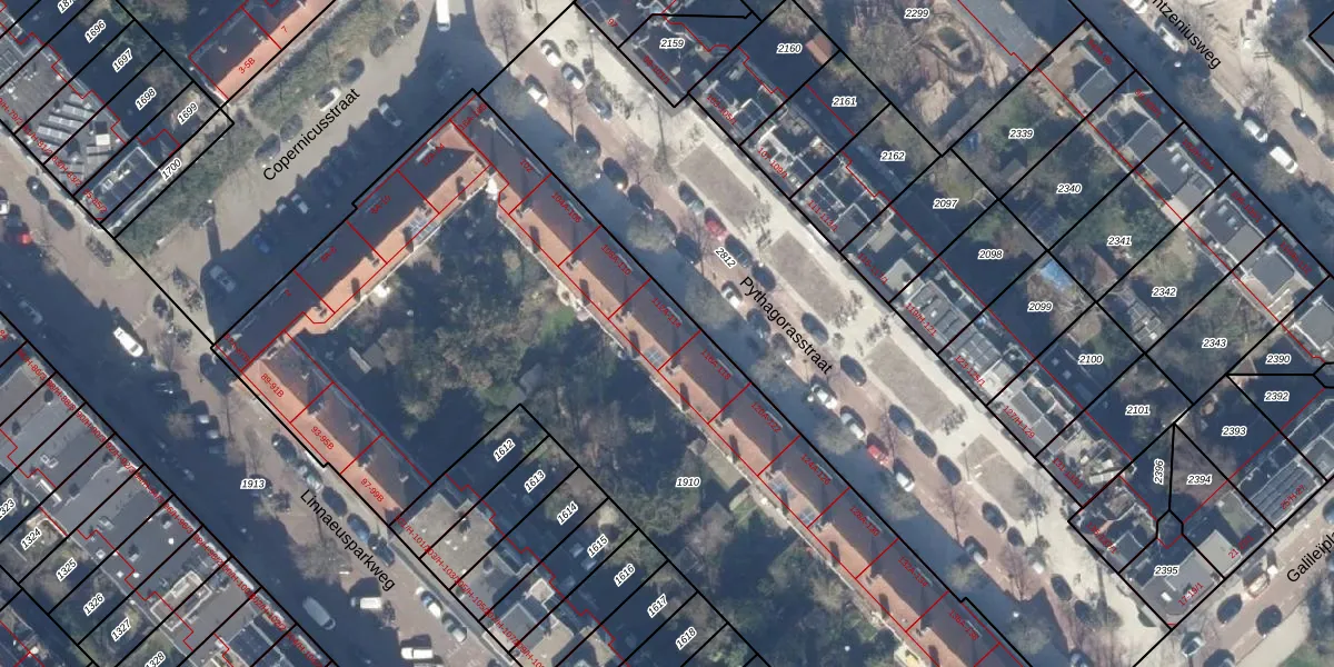 Pythagorasstraat 114 is gelegen op kadastraal perceel WTG02B1910. Deze kadastrale aanduiding is uniek en wordt gebruikt door het Kadaster om eigendomsrechten en andere zakelijke rechten vast te leggen. Het perceel maakt onderdeel uit van de kadastrale gemeente Watergraafsmeer.