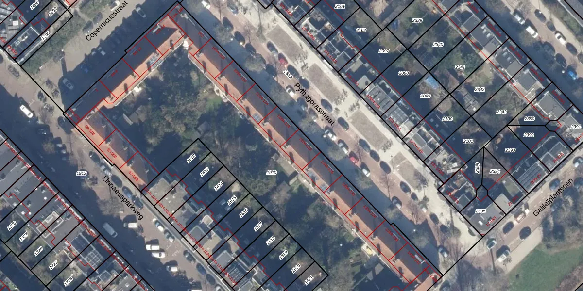 Het perceel waarop Pythagorasstraat 120-A staat heeft een oppervlakte van 5397 m². Dit is een zeer groot perceel. De perceeloppervlakte wordt geregistreerd door het Kadaster. Gedetailleerde informatie over de maten van dit perceel kunt u vinden in het rapport Kadastrale kaart met maatvoering van Pythagorasstraat 120-A.