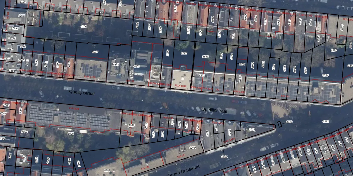 Het perceel waarop Quellijnstraat 131-C staat heeft een oppervlakte van 328 m². Dit is een groot perceel. De perceeloppervlakte wordt geregistreerd door het Kadaster. Gedetailleerde informatie over de maten van dit perceel kunt u vinden in het rapport Kadastrale kaart met maatvoering van Quellijnstraat 131-C.