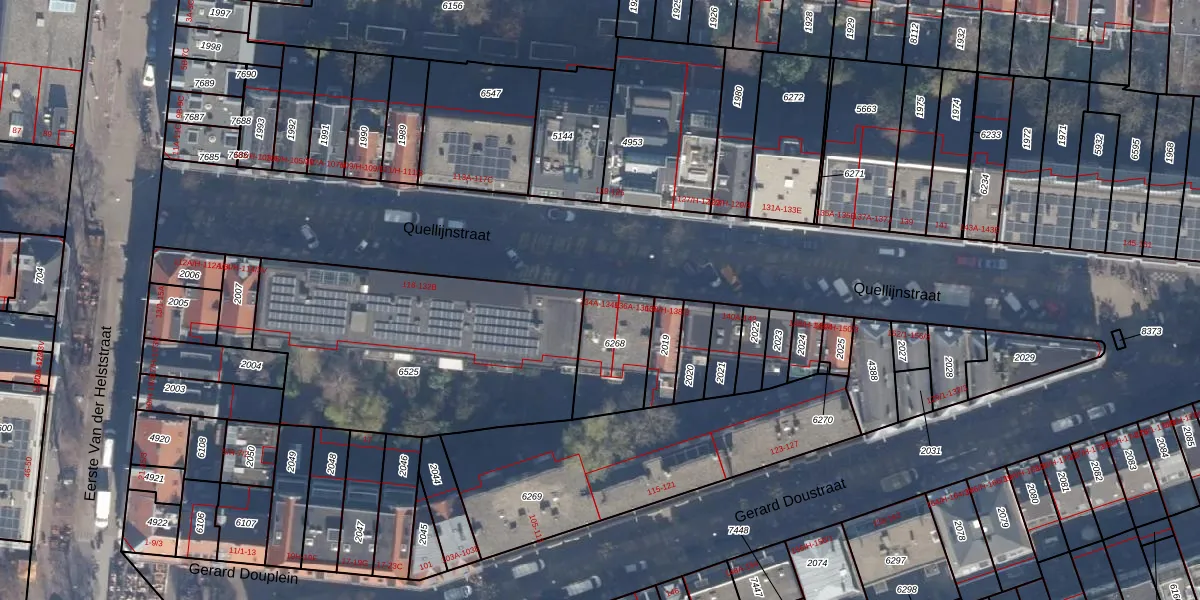 Het perceel waarop Quellijnstraat 134-E staat heeft een oppervlakte van 238 m². Dit is een middelgroot perceel. De perceeloppervlakte wordt geregistreerd door het Kadaster. Gedetailleerde informatie over de maten van dit perceel kunt u vinden in het rapport Kadastrale kaart met maatvoering van Quellijnstraat 134-E.