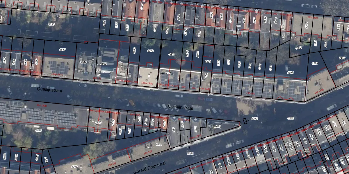 Het perceel waarop Quellijnstraat 137-G staat heeft een oppervlakte van 331 m². Dit is een groot perceel. De perceeloppervlakte wordt geregistreerd door het Kadaster. Gedetailleerde informatie over de maten van dit perceel kunt u vinden in het rapport Kadastrale kaart met maatvoering van Quellijnstraat 137-G.