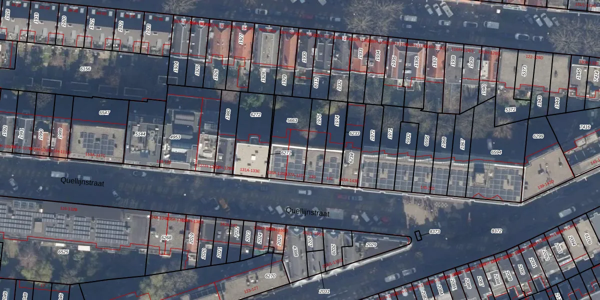 Het perceel waarop Quellijnstraat 137-I staat heeft een oppervlakte van 331 m². Dit is een groot perceel. De perceeloppervlakte wordt geregistreerd door het Kadaster. Gedetailleerde informatie over de maten van dit perceel kunt u vinden in het rapport Kadastrale kaart met maatvoering van Quellijnstraat 137-I.