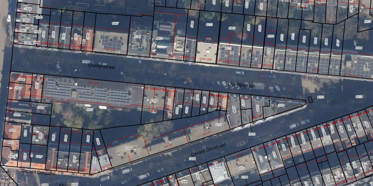 Het perceel waarop Quellijnstraat 140-K staat heeft een oppervlakte van 75 m². Dit is een klein perceel. De perceeloppervlakte wordt geregistreerd door het Kadaster. Gedetailleerde informatie over de maten van dit perceel kunt u vinden in het rapport Kadastrale kaart met maatvoering van Quellijnstraat 140-K.