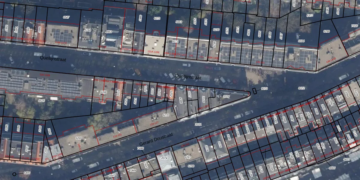 Het perceel waarop Quellijnstraat 152-3 staat heeft een oppervlakte van 125 m². Dit is een middelgroot perceel. De perceeloppervlakte wordt geregistreerd door het Kadaster. Gedetailleerde informatie over de maten van dit perceel kunt u vinden in het rapport Kadastrale kaart met maatvoering van Quellijnstraat 152-3.