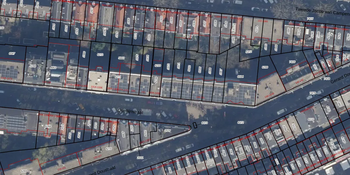Het perceel waarop Quellijnstraat 155-C staat heeft een oppervlakte van 174 m². Dit is een middelgroot perceel. De perceeloppervlakte wordt geregistreerd door het Kadaster. Gedetailleerde informatie over de maten van dit perceel kunt u vinden in het rapport Kadastrale kaart met maatvoering van Quellijnstraat 155-C.