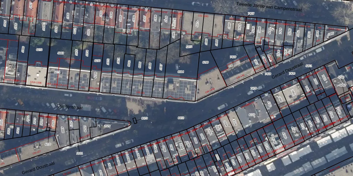 Het perceel waarop Quellijnstraat 159-G staat heeft een oppervlakte van 516 m². Dit is een groot perceel. De perceeloppervlakte wordt geregistreerd door het Kadaster. Gedetailleerde informatie over de maten van dit perceel kunt u vinden in het rapport Kadastrale kaart met maatvoering van Quellijnstraat 159-G.