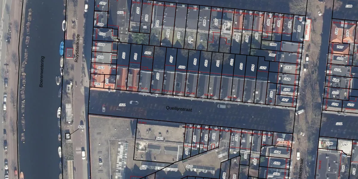 Het perceel waarop het adres ligt is ASD14-R-1518. De afkorting 'ASD14' staat voor kadastrale gemeente Amsterdam. De gemiddelde perceelgrootte in Amsterdam is 354,38 m². Dit perceel is kleiner: de perceeloppervlakte bedraagt 173 m². De grootste perceeloppervlakte in de kadastrale gemeente is 9,9 ha. De kleinste oppervlakte bedraagt 0 m². Op het perceel liggen in totaal 5 adressen. De huidige grenzen van het perceel zijn digitaal in de Basisregistratie Kadaster (BRK) geregistreerd op 09-10-2006.