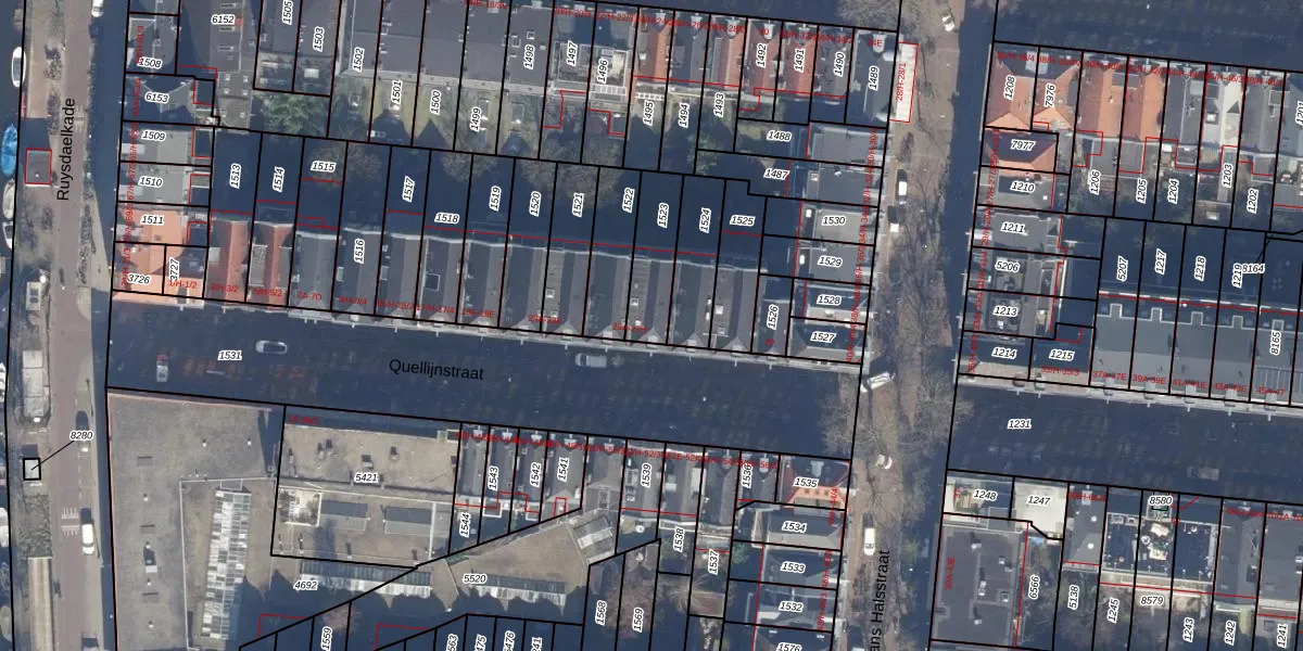 Het perceel waarop Quellijnstraat 27-B staat heeft een oppervlakte van 175 m². Dit is een middelgroot perceel. De perceeloppervlakte wordt geregistreerd door het Kadaster. Gedetailleerde informatie over de maten van dit perceel kunt u vinden in het rapport Kadastrale kaart met maatvoering van Quellijnstraat 27-B.