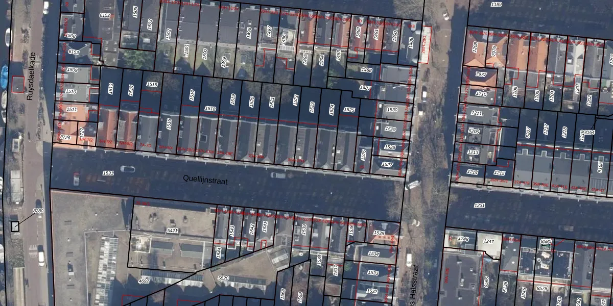 Het perceel waarop Quellijnstraat 27-H staat heeft een oppervlakte van 175 m². Dit is een middelgroot perceel. De perceeloppervlakte wordt geregistreerd door het Kadaster. Gedetailleerde informatie over de maten van dit perceel kunt u vinden in het rapport Kadastrale kaart met maatvoering van Quellijnstraat 27-H.
