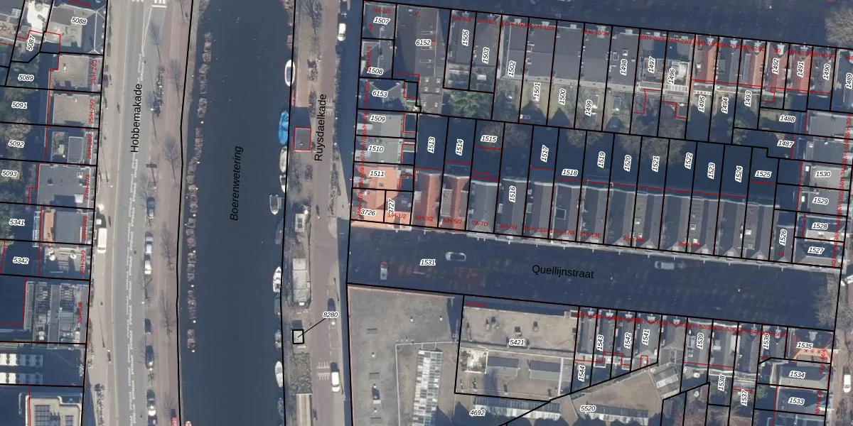 Het adres ligt op het perceel ASD14-R-1513, dat zich in de kadastrale gemeente Amsterdam bevindt. Het perceel is kleiner dan gemiddeld in Amsterdam. Het perceel is 186 m² groot, terwijl het gemiddelde ligt op 354,38 m². Het kleinste perceel in de kadastrale gemeente is 0 m² groot. De grootste perceeloppervlakte is 9,9 ha. Op het perceel liggen in totaal 3 adressen. De huidige grenzen van het perceel zijn digitaal in de Basisregistratie Kadaster (BRK) geregistreerd op 06-10-2006.