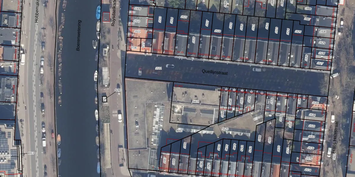 Het perceel waarop Quellijnstraat 32-2 staat heeft een oppervlakte van 622 m². Dit is een groot perceel. De perceeloppervlakte wordt geregistreerd door het Kadaster. Gedetailleerde informatie over de maten van dit perceel kunt u vinden in het rapport Kadastrale kaart met maatvoering van Quellijnstraat 32-2.