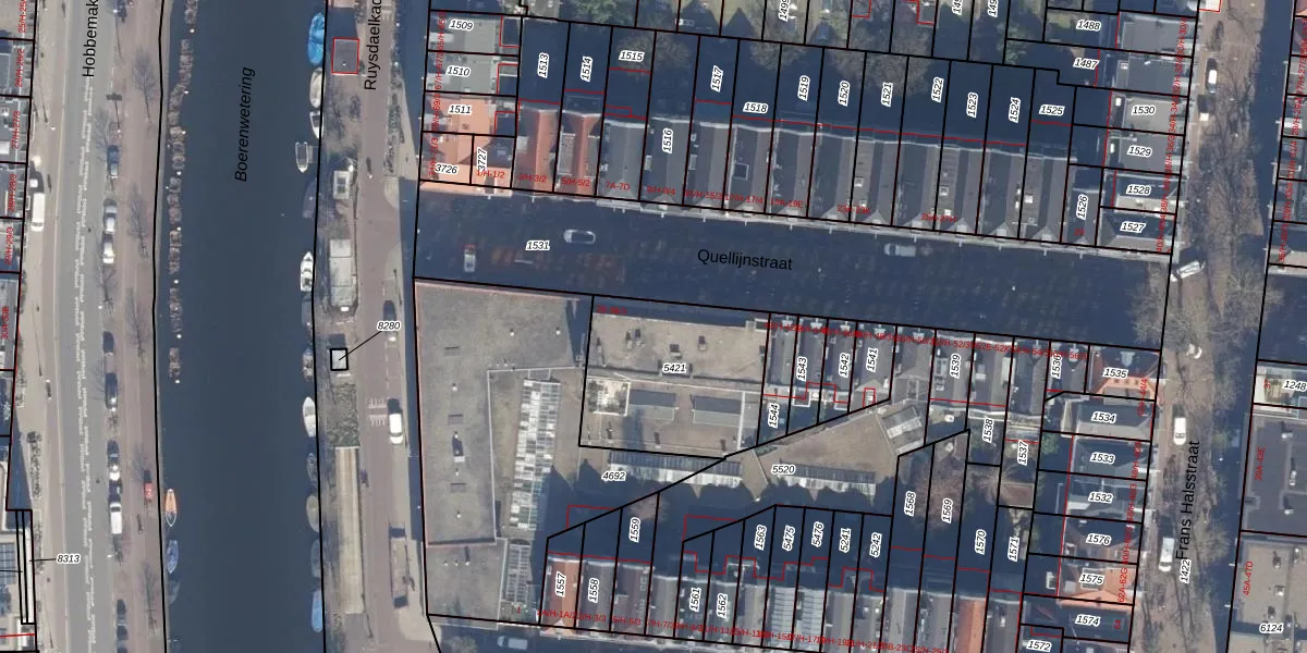 Het adres ligt op het perceel ASD14-R-5421, dat zich in de kadastrale gemeente Amsterdam bevindt. De gemiddelde perceeloppervlakte in de kadastrale gemeente Amsterdam is 354,38 m². Dit perceel is met zijn 622 m² dus groter dan gemiddeld. De grootste perceeloppervlakte in de kadastrale gemeente is 9,9 ha. De kleinste oppervlakte bedraagt 0 m². Op het perceel liggen in totaal 13 adressen. In de Basisregistratie Kadaster (BRK) werden de grenzen van het perceel geregistreerd op 06-10-2006.