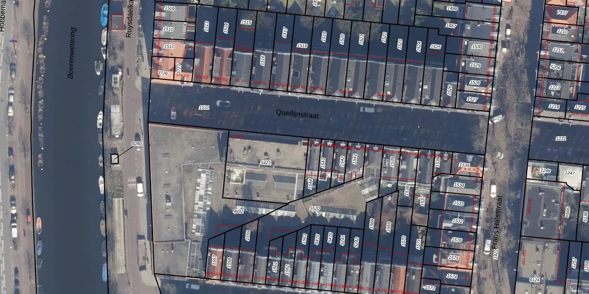 Het perceel waarop Quellijnstraat 38-1 staat heeft een oppervlakte van 622 m². Dit is een groot perceel. De perceeloppervlakte wordt geregistreerd door het Kadaster. Gedetailleerde informatie over de maten van dit perceel kunt u vinden in het rapport Kadastrale kaart met maatvoering van Quellijnstraat 38-1.