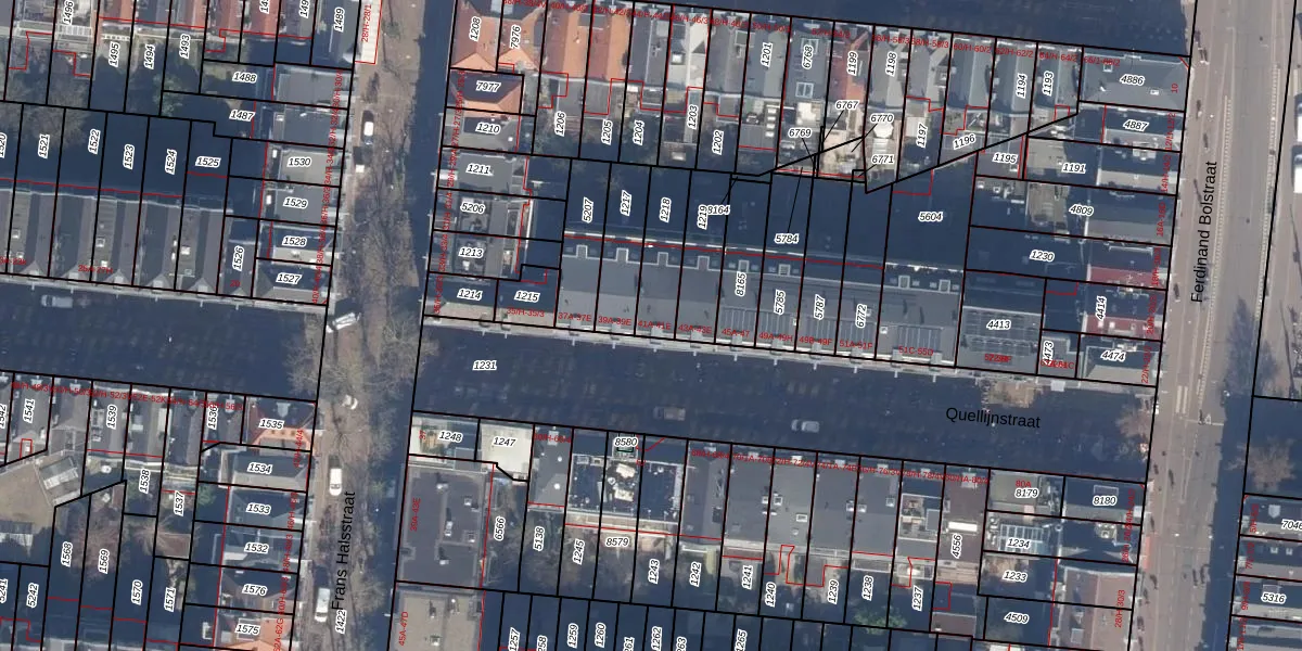 Het perceel waarop Quellijnstraat 41-A staat heeft een oppervlakte van 162 m². Dit is een middelgroot perceel. De perceeloppervlakte wordt geregistreerd door het Kadaster. Gedetailleerde informatie over de maten van dit perceel kunt u vinden in het rapport Kadastrale kaart met maatvoering van Quellijnstraat 41-A.
