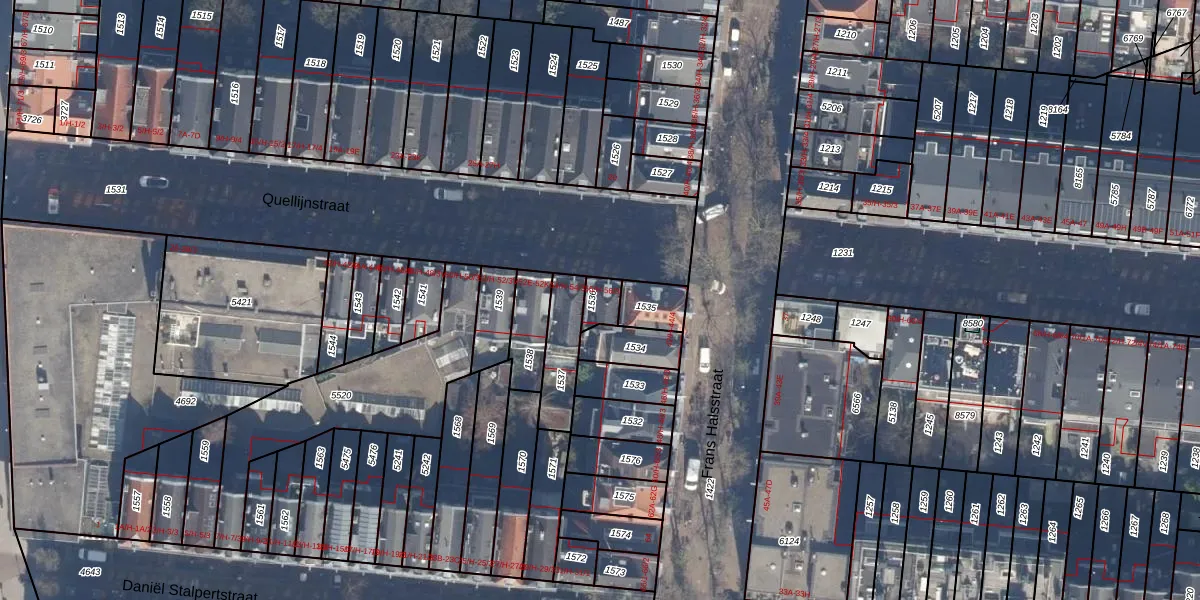 Het perceel waarop Quellijnstraat 56-3 staat heeft een oppervlakte van 48 m². Dit is een klein perceel. De perceeloppervlakte wordt geregistreerd door het Kadaster. Gedetailleerde informatie over de maten van dit perceel kunt u vinden in het rapport Kadastrale kaart met maatvoering van Quellijnstraat 56-3.