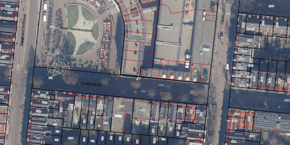 Het adres is gelegen op perceel 6652 in de sectie R en de kadastrale gemeente Amsterdam. De kadastrale aanduiding is aldus ASD14-R-6652. Het perceel is met 3273 m² relatief groot. Het gemiddelde ligt in de kadastrale gemeente Amsterdam op 354,38 m². Het kleinste perceel in de kadastrale gemeente is 0 m² groot. De grootste perceeloppervlakte is 9,9 ha. Er zijn 11 adressen aanwezig op het perceel. De huidige grenzen van het perceel zijn digitaal in de Basisregistratie Kadaster (BRK) geregistreerd op 06-10-2006.