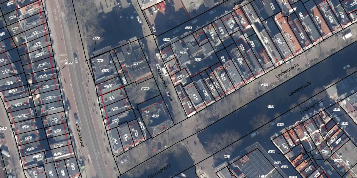 Raamdwarsstraat 9-A is gelegen op kadastraal perceel ASD03E9044. Deze kadastrale aanduiding is uniek en wordt gebruikt door het Kadaster om eigendomsrechten en andere zakelijke rechten vast te leggen. Het perceel maakt onderdeel uit van de kadastrale gemeente Amsterdam.