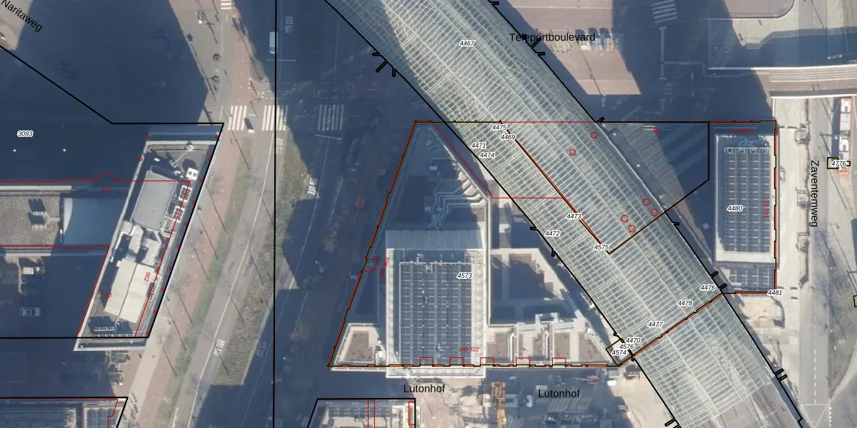 Het perceel waarop Radarweg 295-E staat heeft een oppervlakte van 2277 m². Dit is een zeer groot perceel. De perceeloppervlakte wordt geregistreerd door het Kadaster. Gedetailleerde informatie over de maten van dit perceel kunt u vinden in het rapport Kadastrale kaart met maatvoering van Radarweg 295-E.