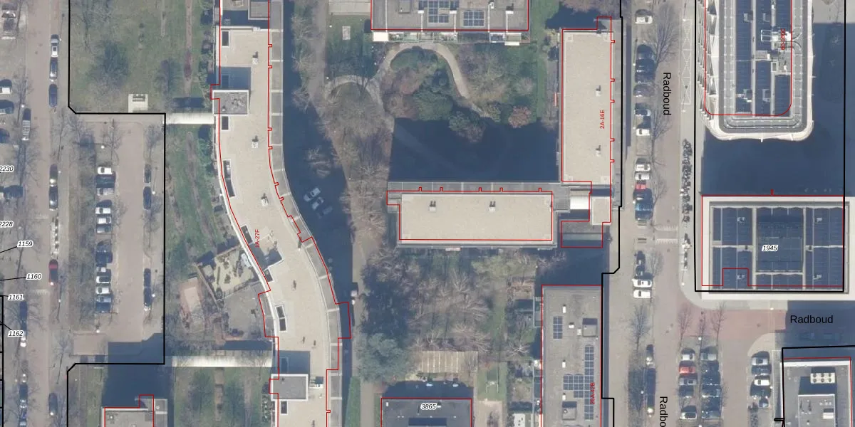 Het perceel waarop Radboud 10-C staat heeft een oppervlakte van 1,7 ha. Dit is een zeer groot perceel. De perceeloppervlakte wordt geregistreerd door het Kadaster. Gedetailleerde informatie over de maten van dit perceel kunt u vinden in het rapport Kadastrale kaart met maatvoering van Radboud 10-C.