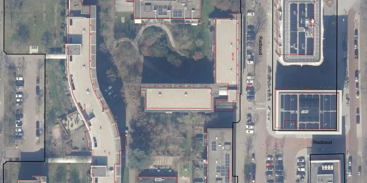 Het perceel waarop Radboud 14-A staat heeft een oppervlakte van 1,7 ha. Dit is een zeer groot perceel. De perceeloppervlakte wordt geregistreerd door het Kadaster. Gedetailleerde informatie over de maten van dit perceel kunt u vinden in het rapport Kadastrale kaart met maatvoering van Radboud 14-A.