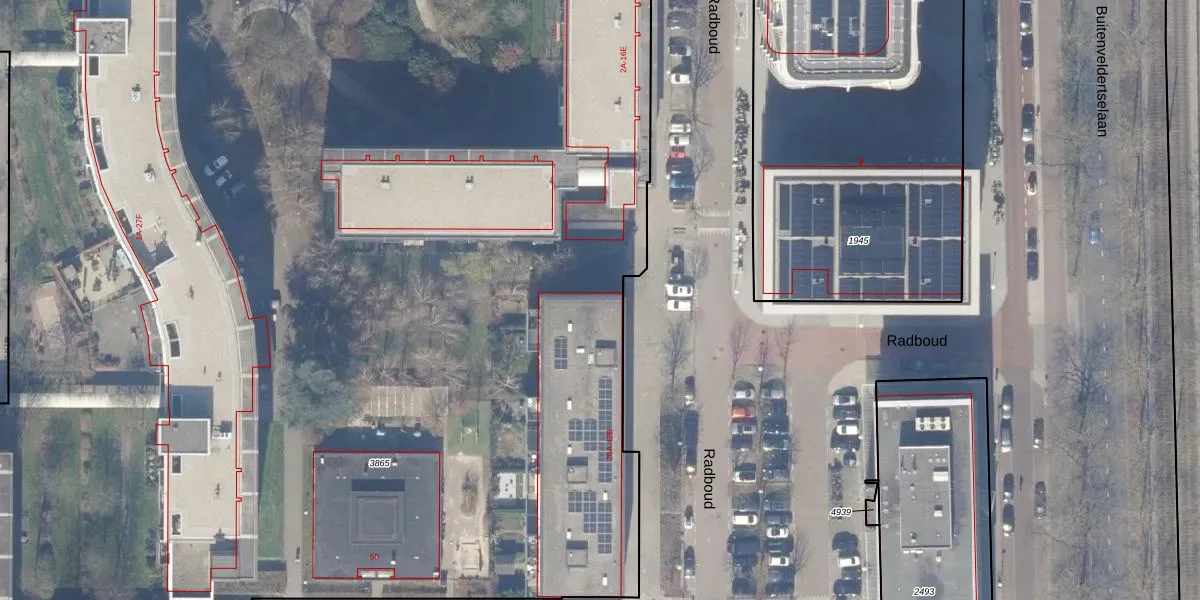 Het perceel waarop Radboud 26-A staat heeft een oppervlakte van 1,7 ha. Dit is een zeer groot perceel. De perceeloppervlakte wordt geregistreerd door het Kadaster. Gedetailleerde informatie over de maten van dit perceel kunt u vinden in het rapport Kadastrale kaart met maatvoering van Radboud 26-A.