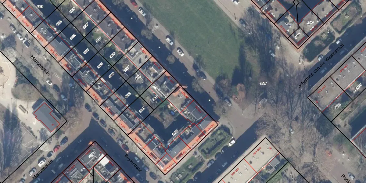 Het adres ligt op het perceel WTG02-B-2485, dat zich in de kadastrale gemeente Watergraafsmeer bevindt. De gemiddelde perceelgrootte in Watergraafsmeer is 1559,8 m². Dit perceel is kleiner: de perceeloppervlakte bedraagt 1193 m². De grootste perceeloppervlakte in de kadastrale gemeente is 32,7 ha. De kleinste oppervlakte bedraagt 0 m². Op het perceel liggen in totaal 21 adressen. De laatste wijziging in het de Basisregistratie Kadaster (BRK) was op 28-09-2006.