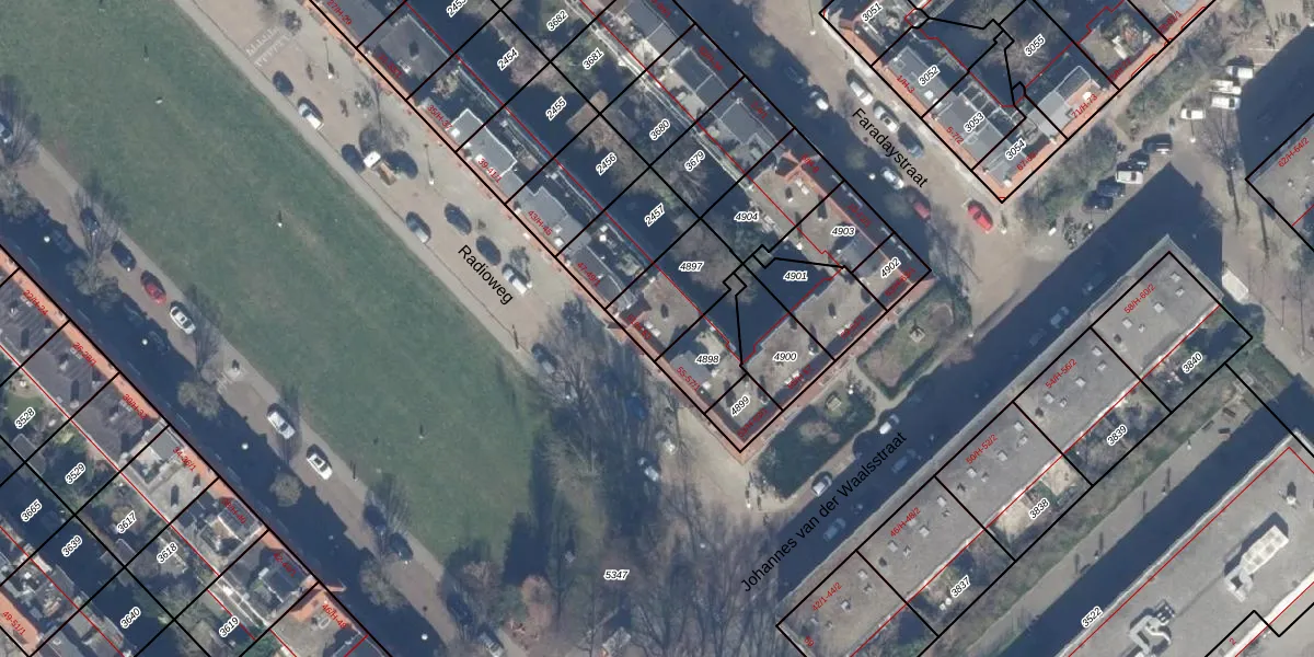 Radioweg 53 is gelegen op kadastraal perceel WTG02B4897. Deze kadastrale aanduiding is uniek en wordt gebruikt door het Kadaster om eigendomsrechten en andere zakelijke rechten vast te leggen. Het perceel maakt onderdeel uit van de kadastrale gemeente Watergraafsmeer.