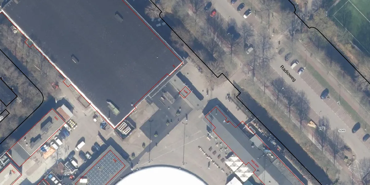 Het perceel waarop Radioweg 64-F staat heeft een oppervlakte van 4,3 ha. Dit is een zeer groot perceel. De perceeloppervlakte wordt geregistreerd door het Kadaster. Gedetailleerde informatie over de maten van dit perceel kunt u vinden in het rapport Kadastrale kaart met maatvoering van Radioweg 64-F.