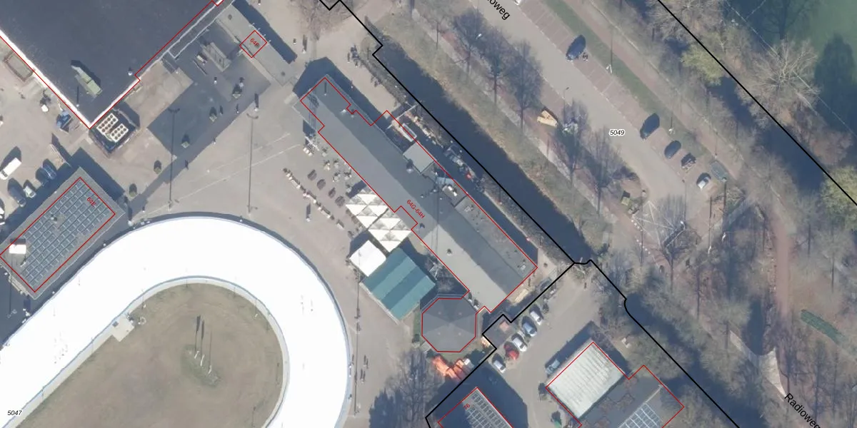 Het perceel waarop Radioweg 64-G staat heeft een oppervlakte van 4,3 ha. Dit is een zeer groot perceel. De perceeloppervlakte wordt geregistreerd door het Kadaster. Gedetailleerde informatie over de maten van dit perceel kunt u vinden in het rapport Kadastrale kaart met maatvoering van Radioweg 64-G.