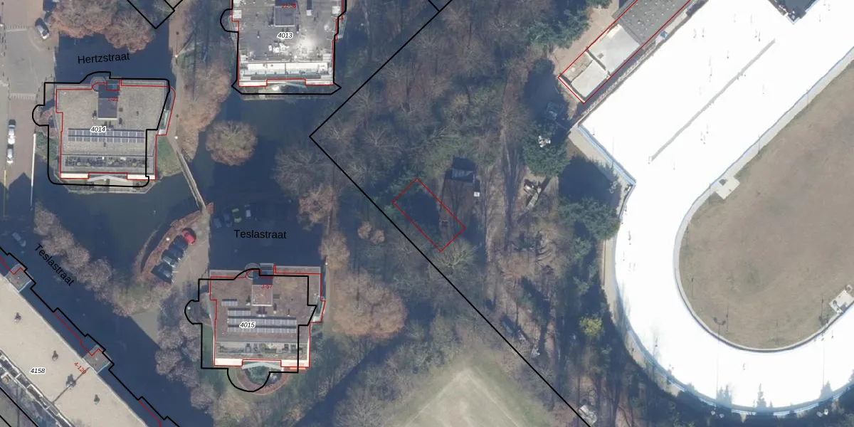 Het perceel waarop Radioweg 64-B staat heeft een oppervlakte van 4,3 ha. Dit is een zeer groot perceel. De perceeloppervlakte wordt geregistreerd door het Kadaster. Gedetailleerde informatie over de maten van dit perceel kunt u vinden in het rapport Kadastrale kaart met maatvoering van Radioweg 64-B.