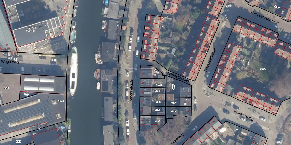 Gebruik de zoekbalk of klik op een perceel voor informatie over de adressen binnen dit perceel.