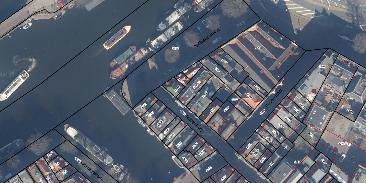 Het perceel waarop Rapenburg 1 staat heeft een oppervlakte van 172 m². Dit is een middelgroot perceel. De perceeloppervlakte wordt geregistreerd door het Kadaster. Gedetailleerde informatie over de maten van dit perceel kunt u vinden in het rapport Kadastrale kaart met maatvoering van Rapenburg 1.