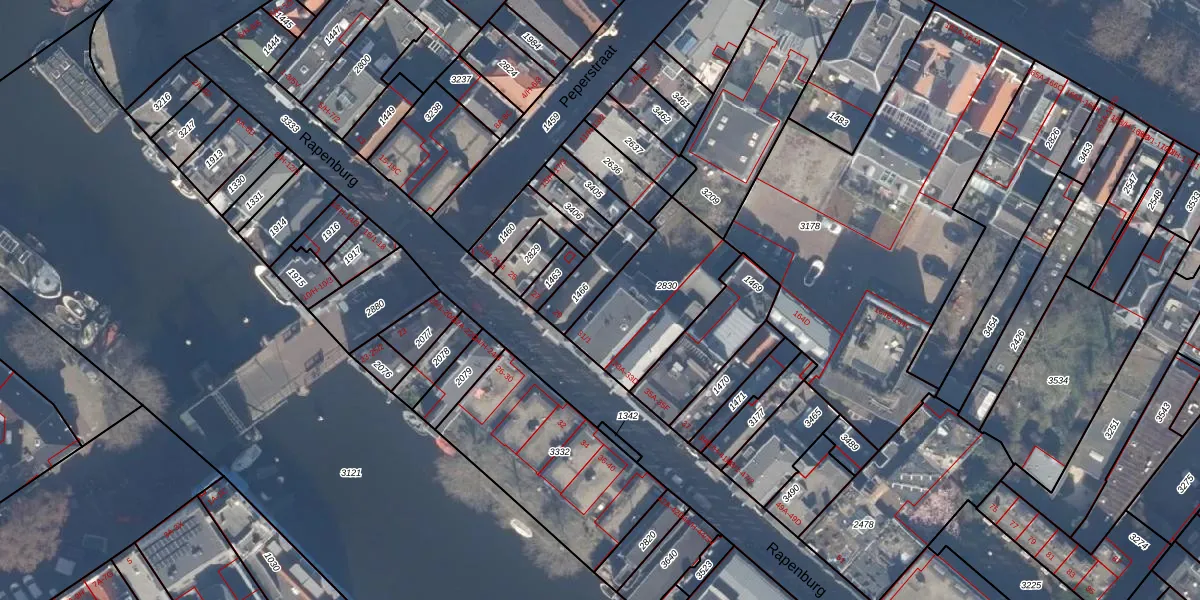 Het perceel waarop Rapenburg 31-G staat heeft een oppervlakte van 436 m². Dit is een groot perceel. De perceeloppervlakte wordt geregistreerd door het Kadaster. Gedetailleerde informatie over de maten van dit perceel kunt u vinden in het rapport Kadastrale kaart met maatvoering van Rapenburg 31-G.