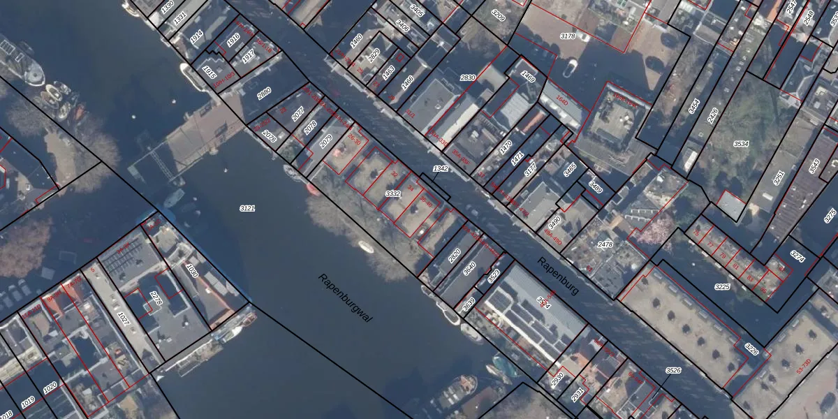 Rapenburg 38-B is gelegen op kadastraal perceel ASD12P3332. Deze kadastrale aanduiding is uniek en wordt gebruikt door het Kadaster om eigendomsrechten en andere zakelijke rechten vast te leggen. Het perceel maakt onderdeel uit van de kadastrale gemeente Amsterdam.