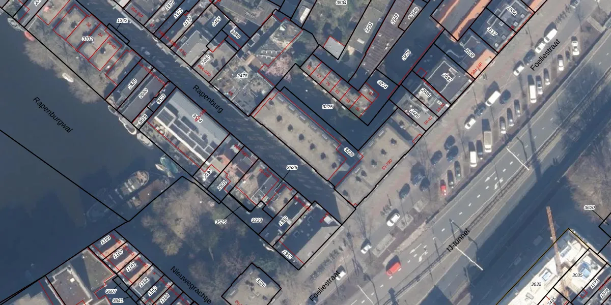 Het perceel waarop Rapenburg 57-E staat heeft een oppervlakte van 890 m². Dit is een groot perceel. De perceeloppervlakte wordt geregistreerd door het Kadaster. Gedetailleerde informatie over de maten van dit perceel kunt u vinden in het rapport Kadastrale kaart met maatvoering van Rapenburg 57-E.