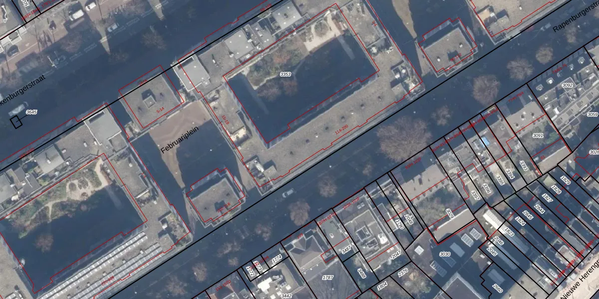 Rapenburgerstraat 172 is gelegen op kadastraal perceel ASD12P3353. Deze kadastrale aanduiding is uniek en wordt gebruikt door het Kadaster om eigendomsrechten en andere zakelijke rechten vast te leggen. Het perceel maakt onderdeel uit van de kadastrale gemeente Amsterdam.