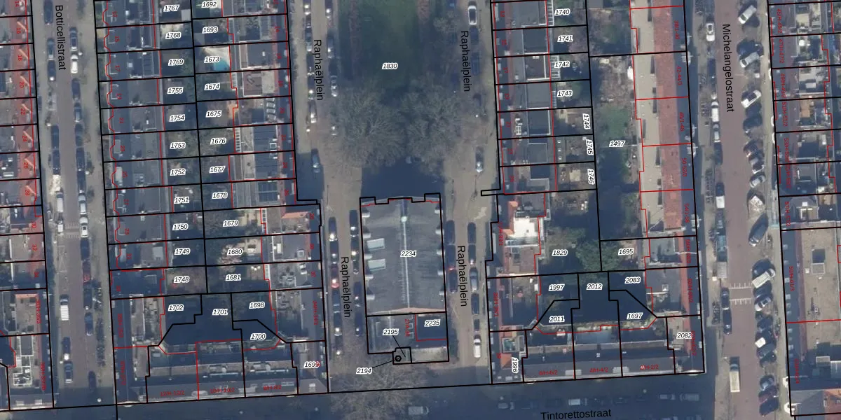 Het perceel waarop Raphaëlplein 27-A staat heeft een oppervlakte van 521 m². Dit is een groot perceel. De perceeloppervlakte wordt geregistreerd door het Kadaster. Gedetailleerde informatie over de maten van dit perceel kunt u vinden in het rapport Kadastrale kaart met maatvoering van Raphaëlplein 27-A.