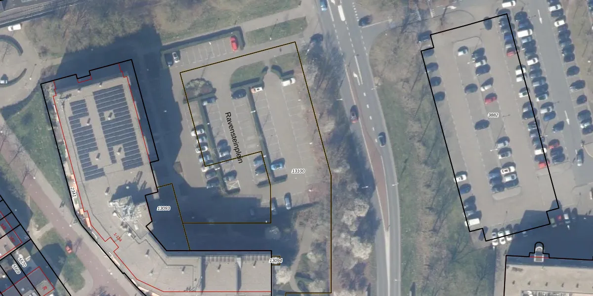 Het perceel waarop Ravensteinplein 29 staat heeft een oppervlakte van 2634 m². Dit is een zeer groot perceel. De perceeloppervlakte wordt geregistreerd door het Kadaster. Gedetailleerde informatie over de maten van dit perceel kunt u vinden in het rapport Kadastrale kaart met maatvoering van Ravensteinplein 29.