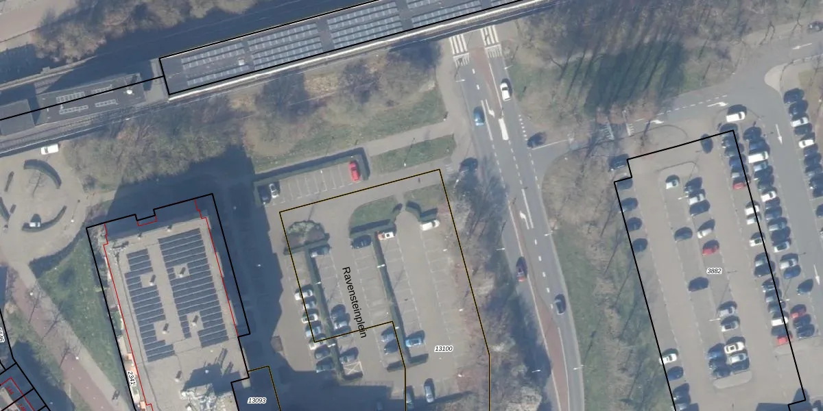 Het perceel waarop Ravensteinplein 43 staat heeft een oppervlakte van 2634 m². Dit is een zeer groot perceel. De perceeloppervlakte wordt geregistreerd door het Kadaster. Gedetailleerde informatie over de maten van dit perceel kunt u vinden in het rapport Kadastrale kaart met maatvoering van Ravensteinplein 43.