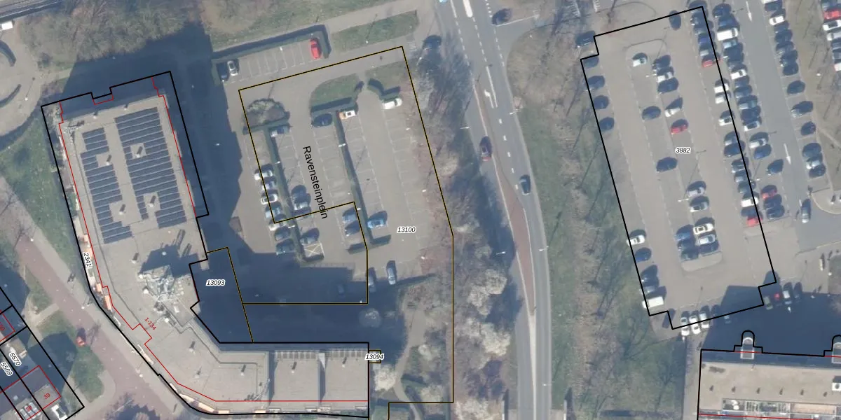 Het perceel waarop Ravensteinplein 5 staat heeft een oppervlakte van 2634 m². Dit is een zeer groot perceel. De perceeloppervlakte wordt geregistreerd door het Kadaster. Gedetailleerde informatie over de maten van dit perceel kunt u vinden in het rapport Kadastrale kaart met maatvoering van Ravensteinplein 5.