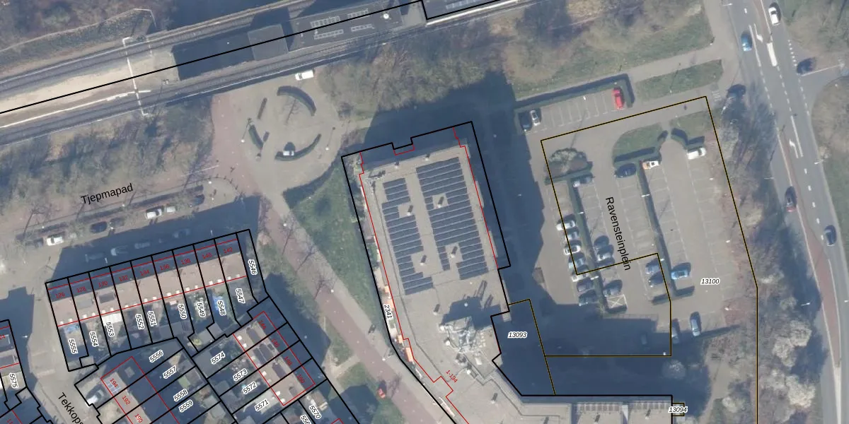 Het perceel waarop Ravensteinstraat 19 staat heeft een oppervlakte van 2587 m². Dit is een zeer groot perceel. De perceeloppervlakte wordt geregistreerd door het Kadaster. Gedetailleerde informatie over de maten van dit perceel kunt u vinden in het rapport Kadastrale kaart met maatvoering van Ravensteinstraat 19.
