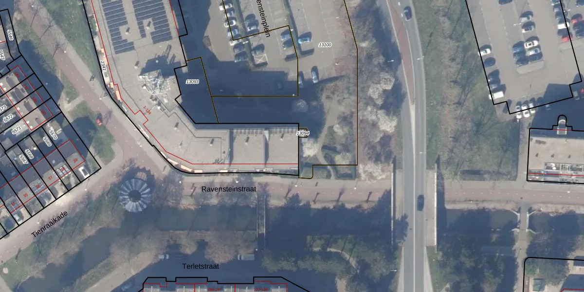 Het perceel waarop Ravensteinstraat 23 staat heeft een oppervlakte van 2587 m². Dit is een zeer groot perceel. De perceeloppervlakte wordt geregistreerd door het Kadaster. Gedetailleerde informatie over de maten van dit perceel kunt u vinden in het rapport Kadastrale kaart met maatvoering van Ravensteinstraat 23.
