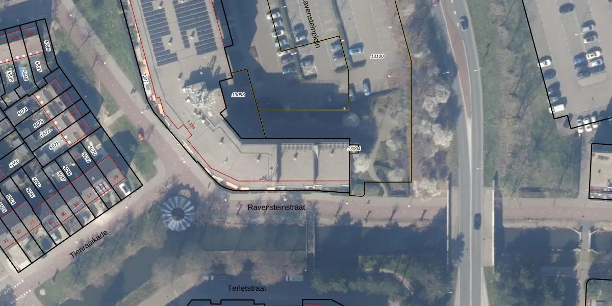 Het perceel waarop Ravensteinstraat 25 staat heeft een oppervlakte van 2587 m². Dit is een zeer groot perceel. De perceeloppervlakte wordt geregistreerd door het Kadaster. Gedetailleerde informatie over de maten van dit perceel kunt u vinden in het rapport Kadastrale kaart met maatvoering van Ravensteinstraat 25.