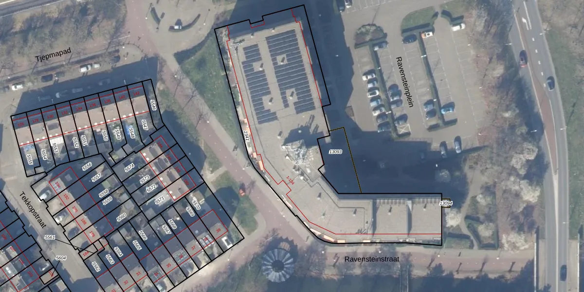 Het perceel waarop Ravensteinstraat 33 staat heeft een oppervlakte van 2587 m². Dit is een zeer groot perceel. De perceeloppervlakte wordt geregistreerd door het Kadaster. Gedetailleerde informatie over de maten van dit perceel kunt u vinden in het rapport Kadastrale kaart met maatvoering van Ravensteinstraat 33.