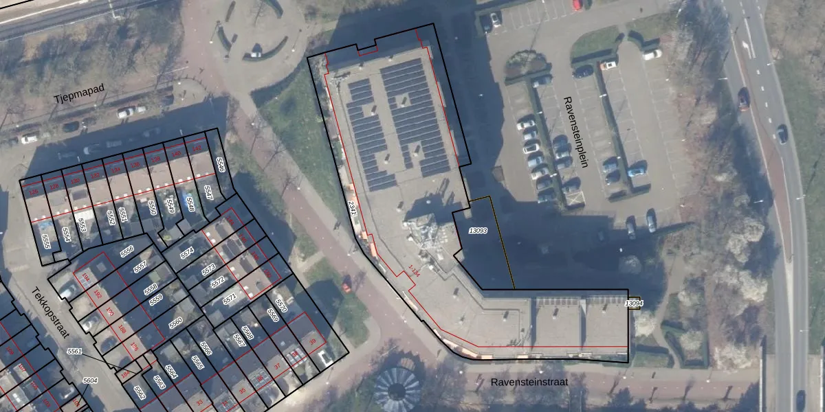 Het perceel waarop Ravensteinstraat 34 staat heeft een oppervlakte van 2587 m². Dit is een zeer groot perceel. De perceeloppervlakte wordt geregistreerd door het Kadaster. Gedetailleerde informatie over de maten van dit perceel kunt u vinden in het rapport Kadastrale kaart met maatvoering van Ravensteinstraat 34.